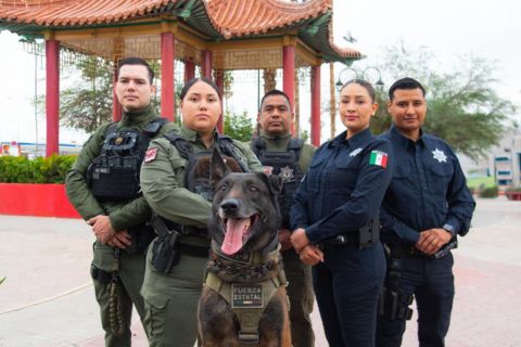 MXLI ELEMENTOS DE FESC EXPONEN A NIÑOS DE MEXICALI TRABAJO DE LOS AGENTES CANINOS.